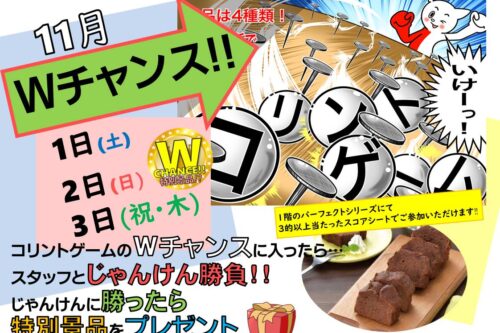 【10/11(土曜日)~3日間限定!!野球盤Wチャンス!!】