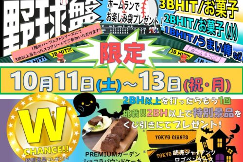 【10/11(土曜日)~3日間限定!!野球盤Wチャンス!!】