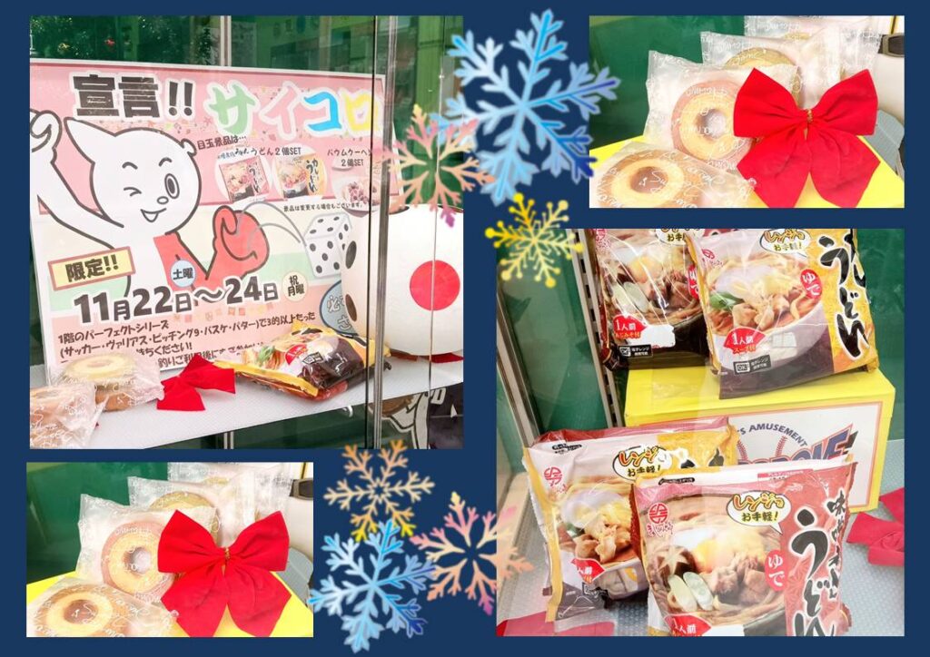 見事、宣言通りの目が出たら「うどん2食SET」or「バウムクーヘン2個SET」から