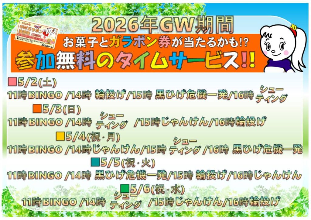 ■ガラポン参加券も当たる!? 参加無料のタイムサービス1日4回開催!!