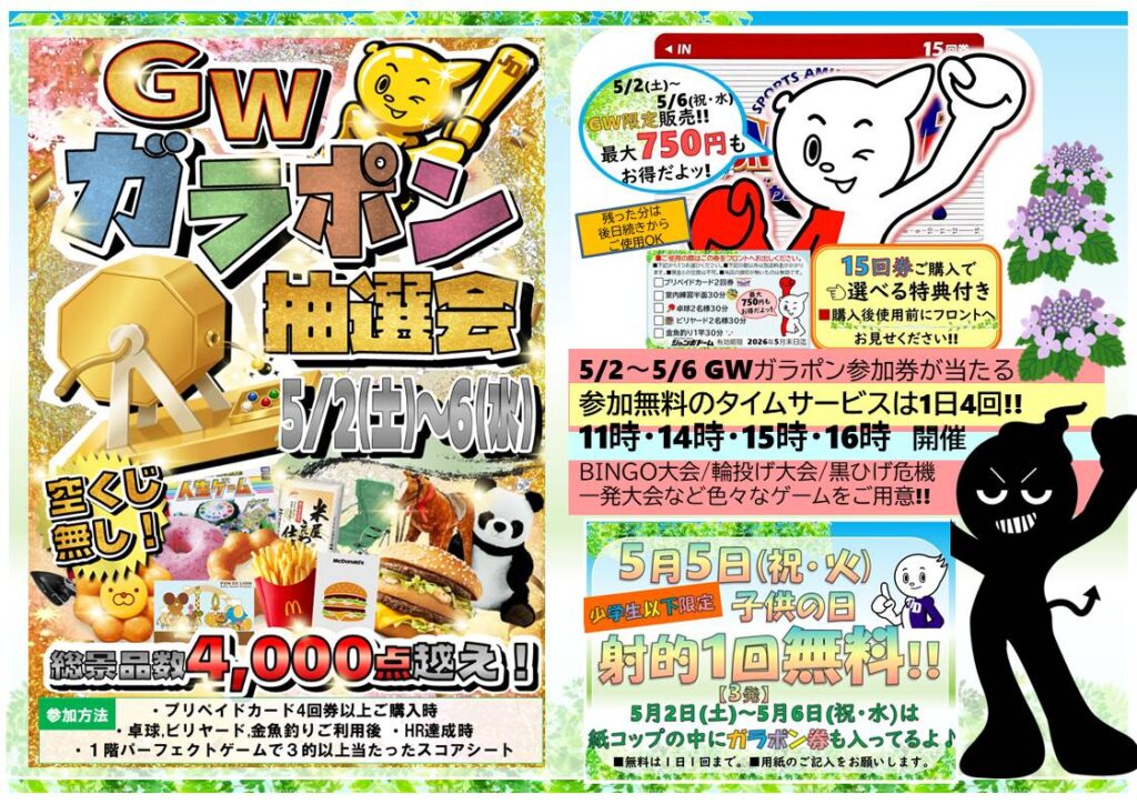 卓球・ビリヤード・金魚釣りご利用後、ホームラン達成時にご参加いただけます💓