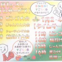 11:00~ビンゴ大会 14:00~じゃんけん大会 15:00~シューティング大会 16:00~輪投げ大会
