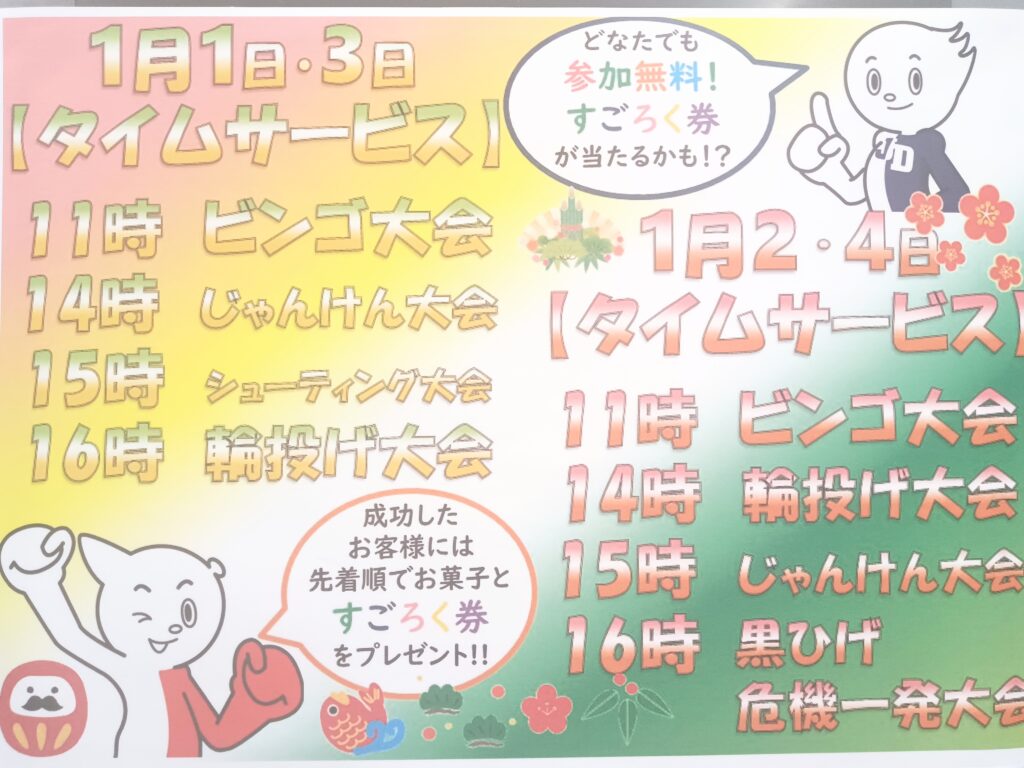 元日からのタイムサービスはなんと1日4回開催❣
