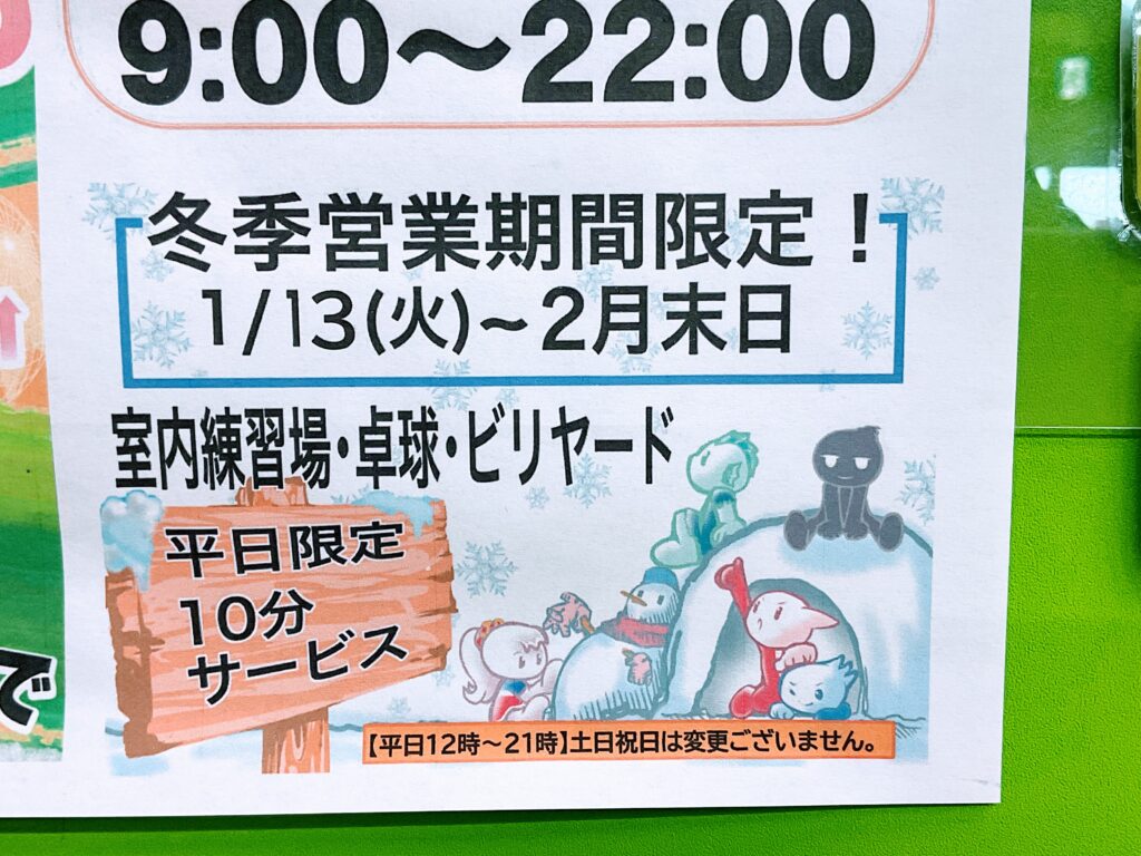2月末まで卓球🏓・ビリヤード🎱・室内練習⚾10分延長サービス実施中~❣(*’▽’)ノ