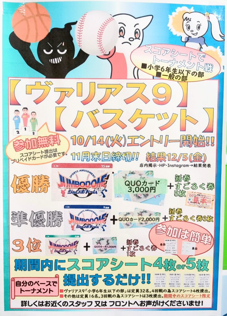 今回はヴァリアス9⚾️とバスケット🏀だよ!