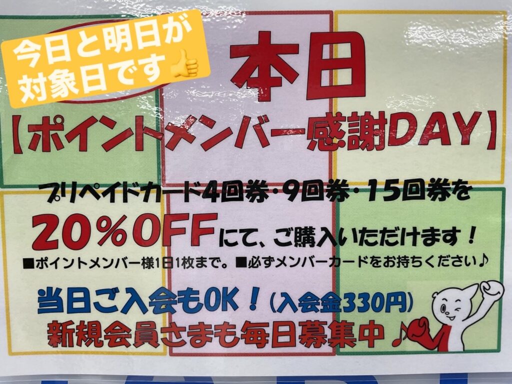 皆さま~!今日明日『月に一度のポイントメンバー感謝DAY』を開催いたします~❣(*’▽’)ノ