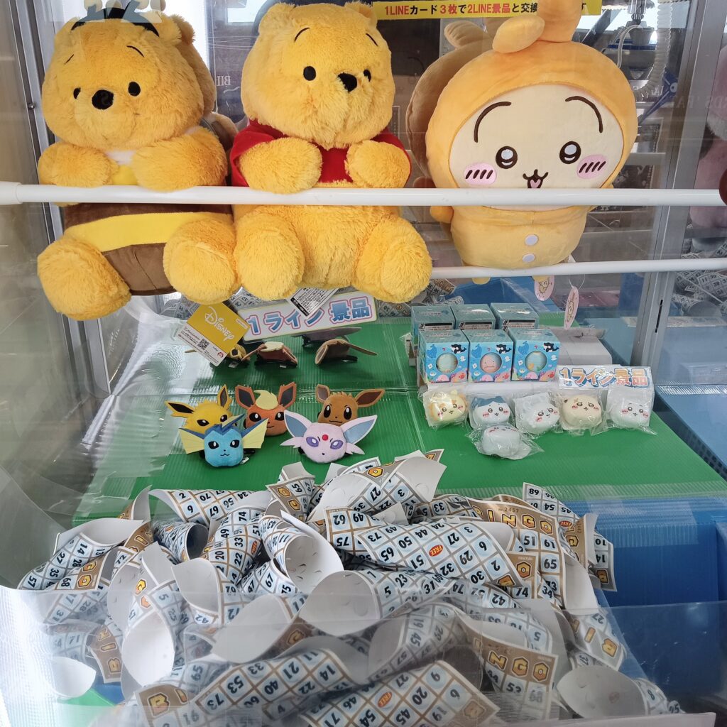 ビンゴくじには、もふもふプーさん・ポケモンヘアピン・ちいかわ達と盛りだくさん!