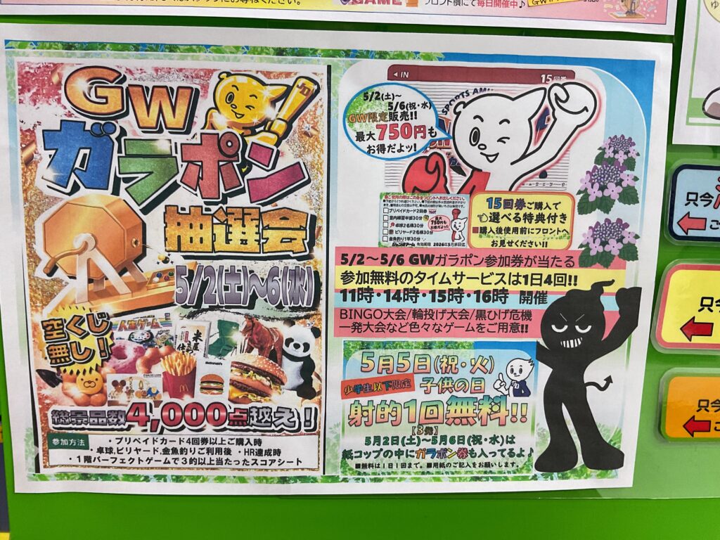 約1ヶ月後のGW5月2日~6日の5日間GWガラポン抽選会を開催いたします~❣(*’▽’)ノ