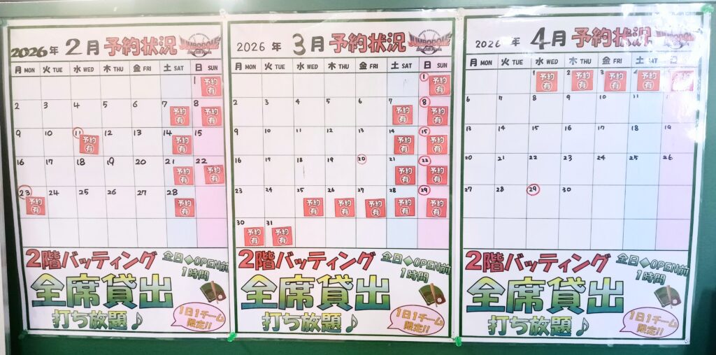今日現在の予約状況は・・・(/・ω・)/⚾